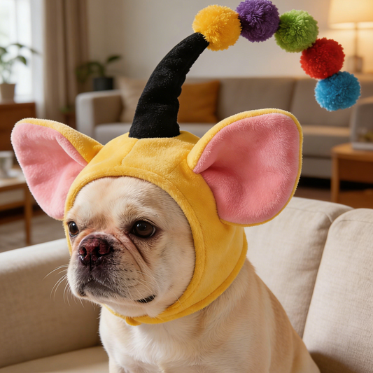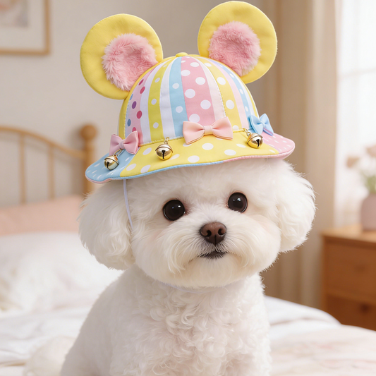 Rainbow Pom-Pom Pet Hat | Cute Yellow Mouse Ears Dog & Cat Costume
