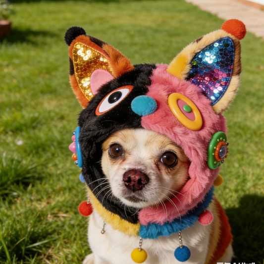 Colorful Split-Design Pet Hat with Sequins & Bells | Bold Festival Dog & Cat Costume